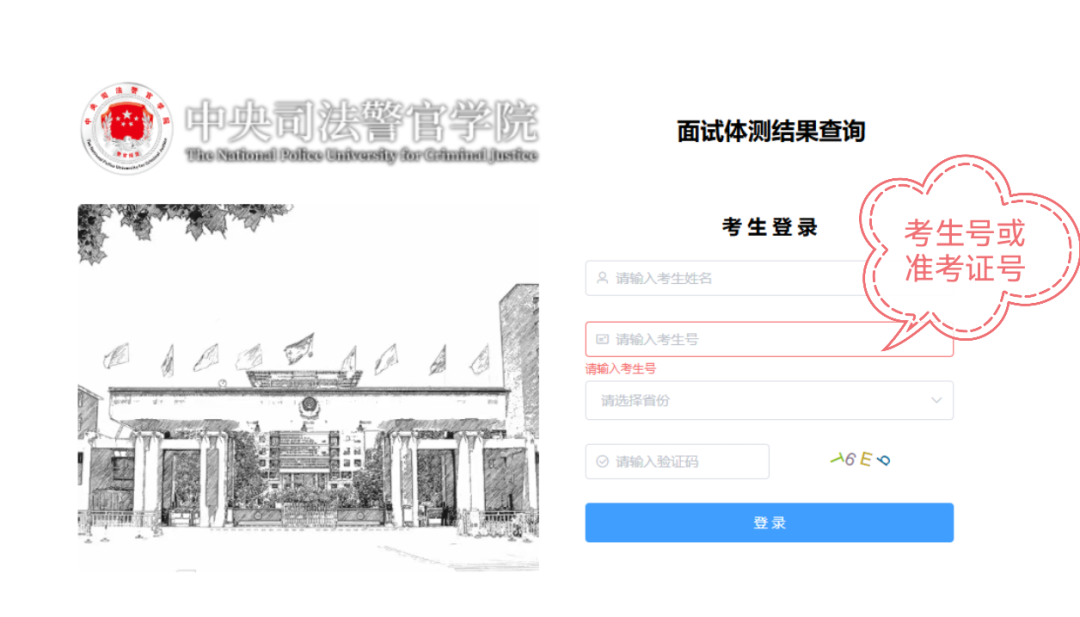 2025年已参加招生面试体检体能测试的合格考生,请登录中央司法警官学院官网“本科招生”网页,点击右下方“面试体测结果查询”图标或登录网址//hbybm.cicp.edu.cn:8083/login,根据提示输入姓名、考生号(无考生号的输入准考证号)等信息,查询面试体检体能测试结果。