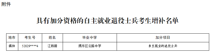 附件:具有加分资格的自主就业退役士兵考生增补名单